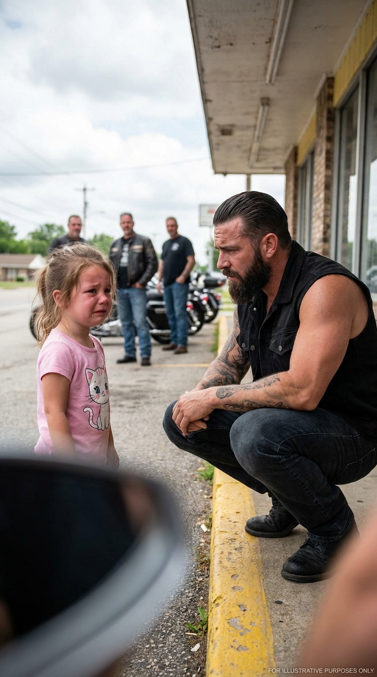 A HELLS ANGEL ASKED A LITTLE GIRL WHO HURT HER—WHEN SHE SAID “MY DAD,” THE WHOLE PARKING LOT WENT SILENT