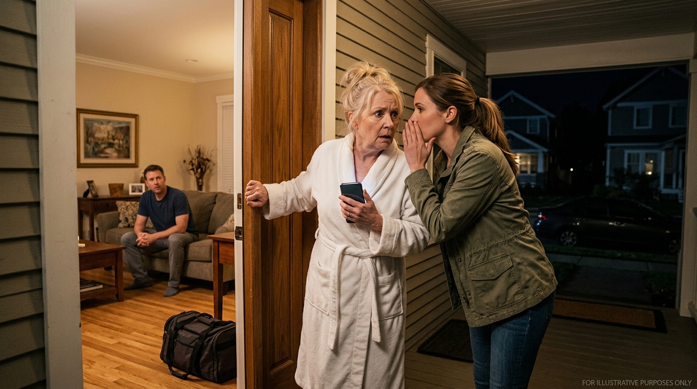 When I opened the door, Denise stepped inside without waiting for an invitation. She wore jeans, a rain jacket over a T-shirt, no makeup. Under the porch light, her face looked drained.