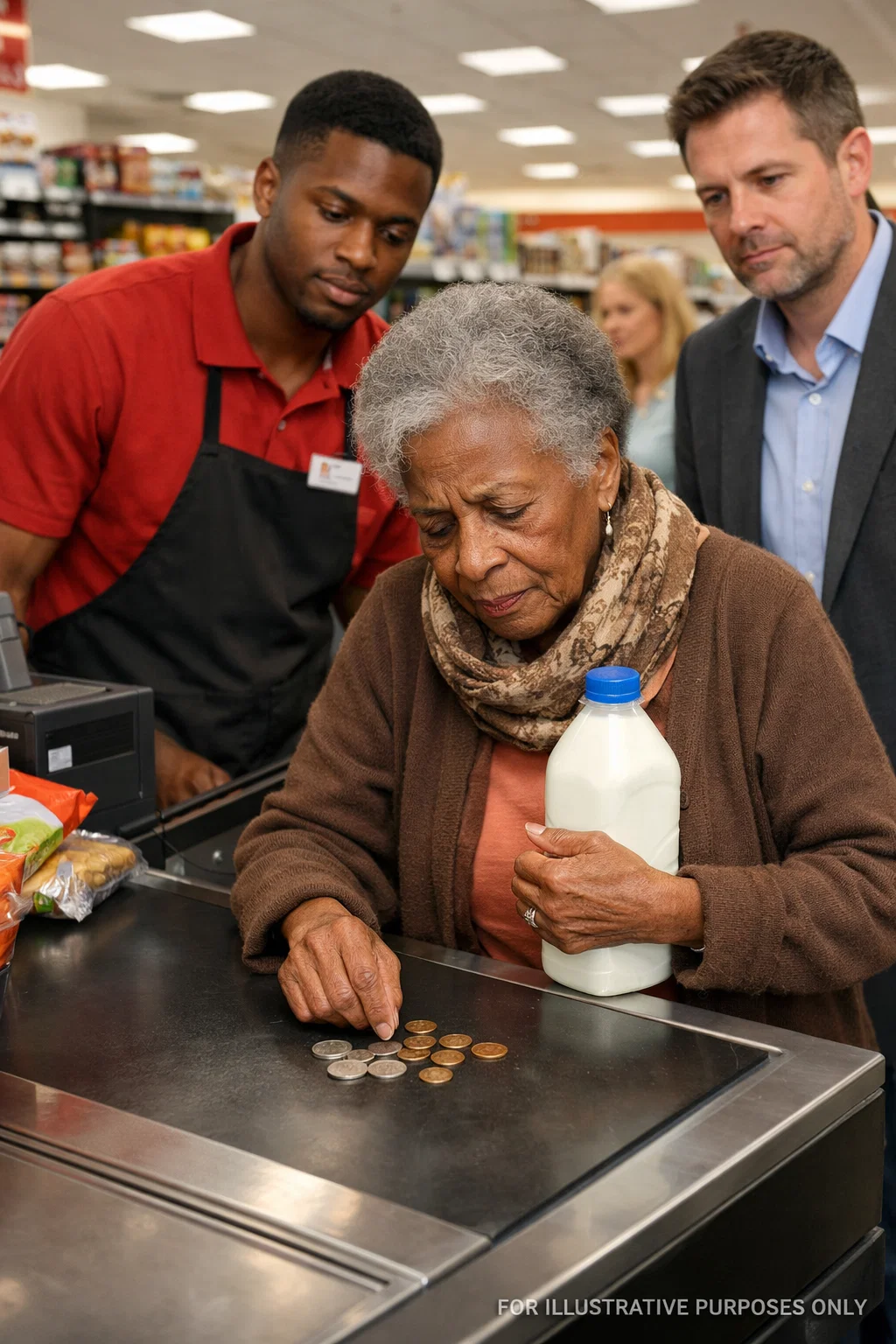 “Please let me pay tomorrow.” Her voice cracked through the crowded supermarket as trembling fingers dropped the last few coins onto the counter, eyes filled with raw desperation. The cashier stared coldly, unmoved, while people behind her sighed loudly, some even laughing as phones lifted, recording her humiliation like it was just another viral moment. Before we dive in, let us know in the comments what time is it and where are you watching from. Let’s start. Her hand shook harder as she tried to gather the scattered coins, clutching…