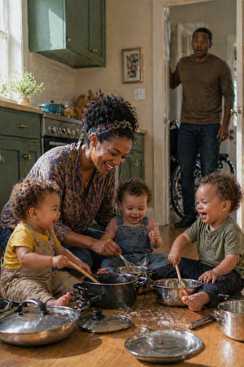 Elena let out a muffled scream and jumped back, tripping over a box of toys. Her face turned completely pale. The three little ones, startled by the sudden noise, began to cry in unison.