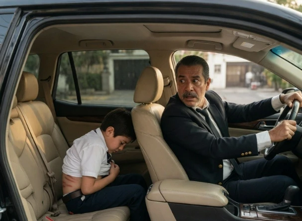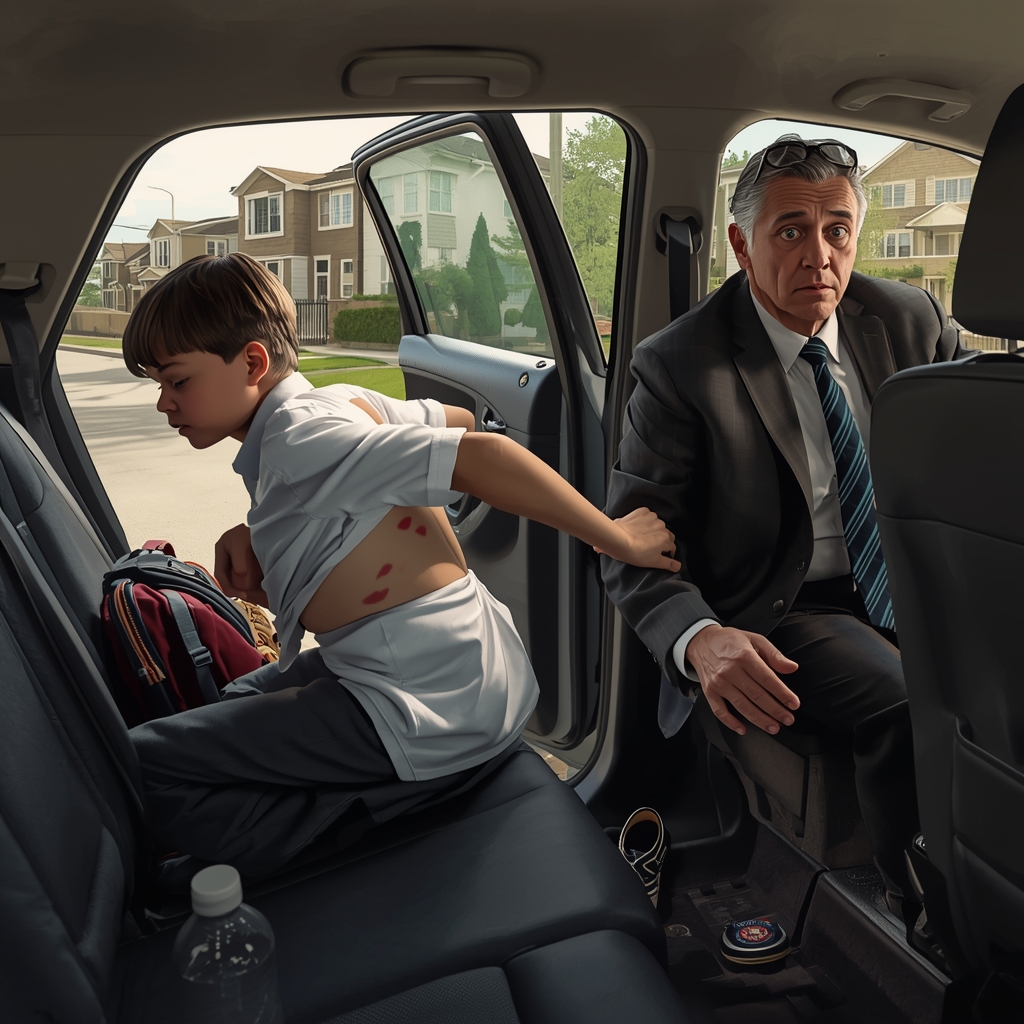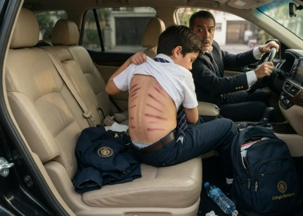 “Sir, your son’s back is covered in marks. Old and new. They’re not from a fall. He told me so in the car.”