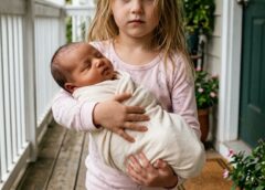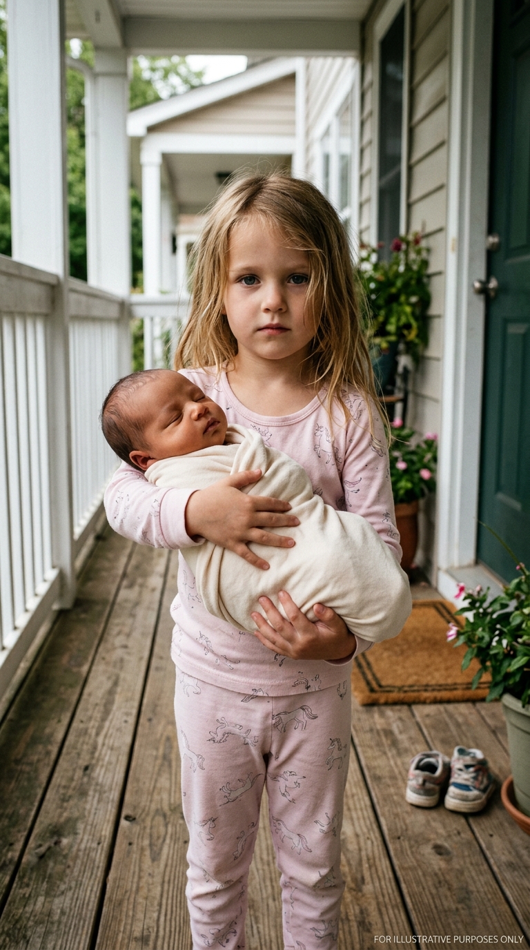 For a second, my mind refused to catch up. It was too surreal. My eight-year-old in duck-print pajamas, muddy feet, trembling… holding a newborn like she’d just picked him up off the ground.