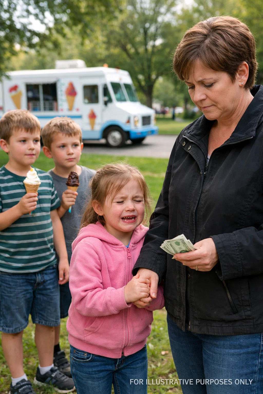 Then she spotted an ice cream cart near the playground and looked up at me, uncertain.