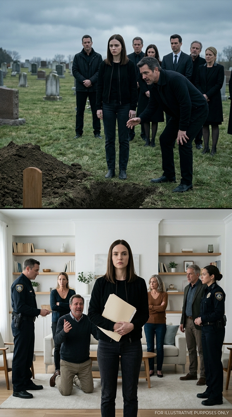 I climbed down carefully, my heels sinking into wet mud, and lifted the small blue savings book from Grandma’s coffin lid. Dirt stained its cover. My fingers trembled, but my voice stayed steady.